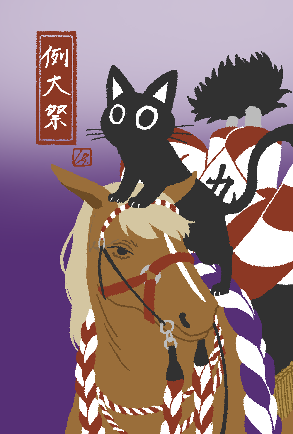 威勢よく奉納される飾馬にまたがる、あおまるをモチーフにしました。