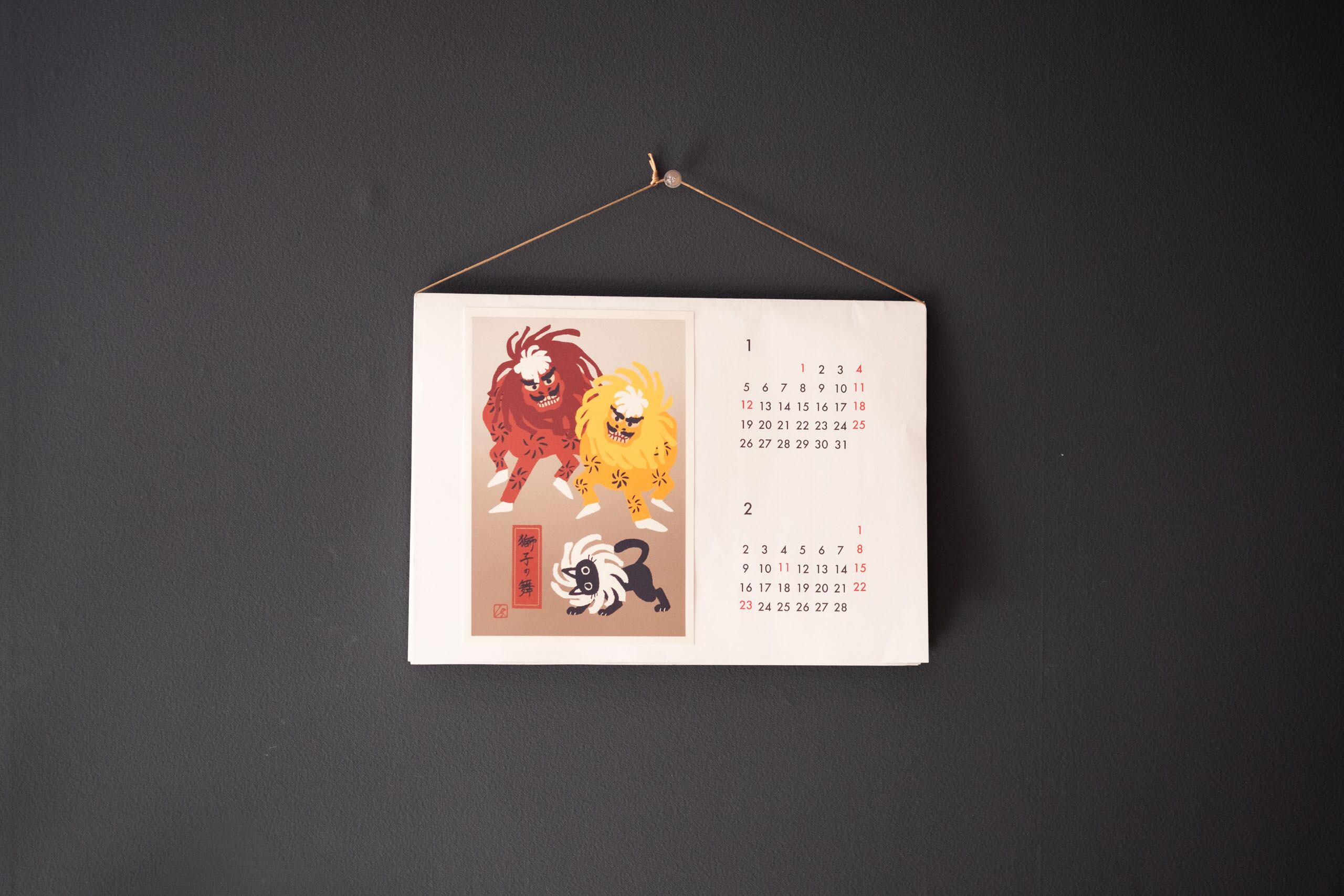 くまもとのお祭りである、例大祭や牛深ハイヤなどをモチーフにお祭りに旅するねこを描いたカレンダーです。全部で計6つのイラストで表現しています。
