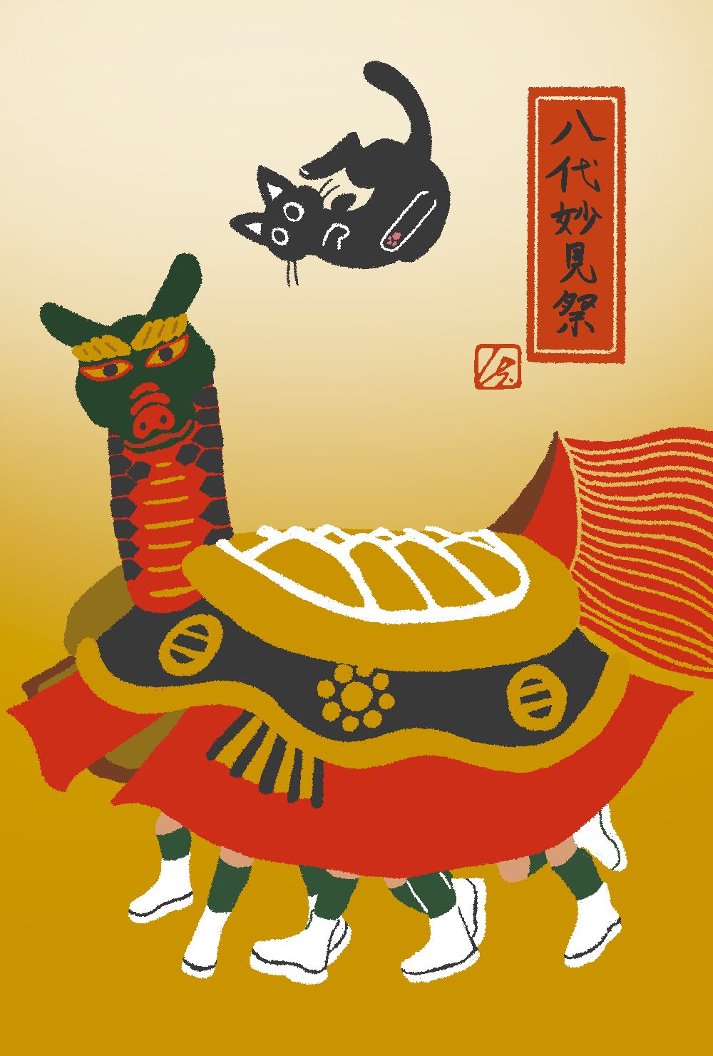 お囃子の音とともに、秋の高揚感を描き出しています。潜むねこ。