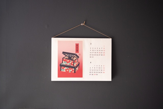 3月、4月の春のページは、桃の節句にちなんだ「花手箱」。